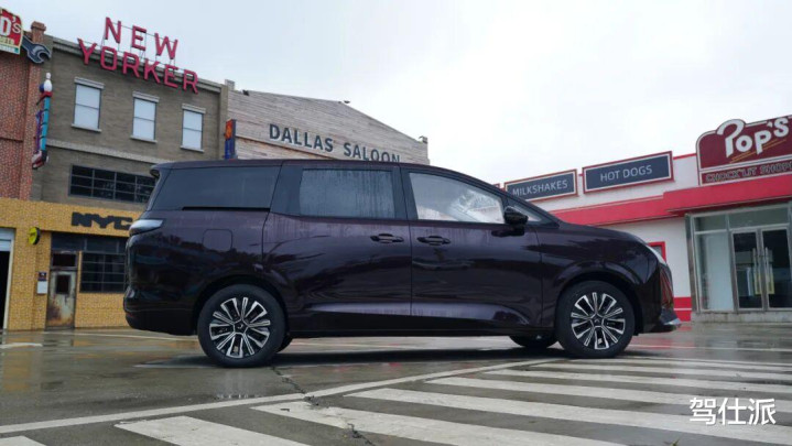 侧面则延续MPV经典的方正轮廓,确保空间利用率最大化。而标配的双侧滑门除了比同级别的外拉门进出更方便之外,它还有自己的巧妙之处——首先,侧滑门轨道隐藏于窗线之下,辅以倾斜设计,借助重力即可轻松关闭,关门时既省力又优雅。其次,侧滑门的门洞高度达1145mm,配合低门槛与B柱拉手设计,老人与孩子都可以轻松上下车,这项体验比很多新能源MPV更好。
