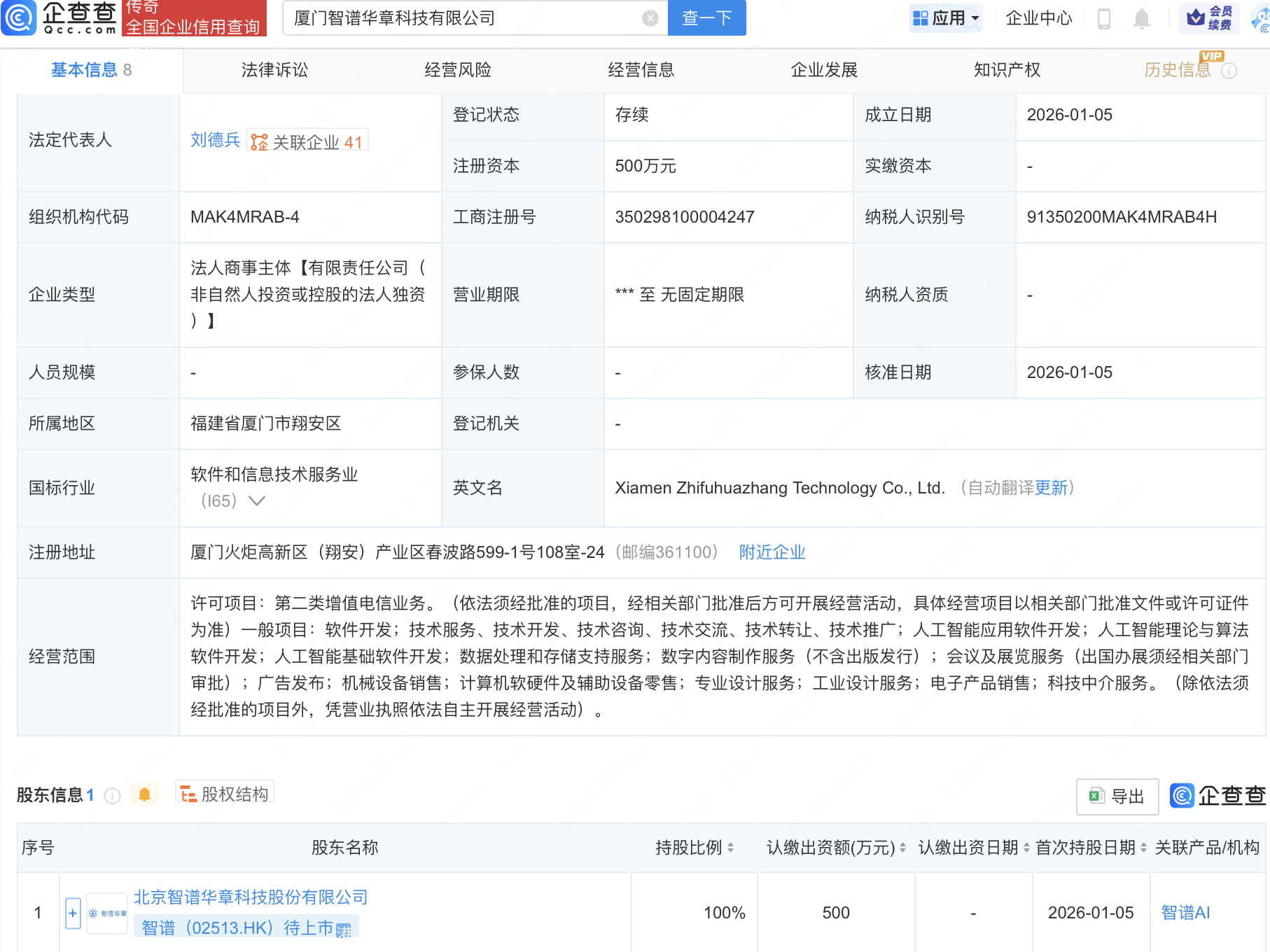 配资港股一览表今日大盘厦门智谱华章科技有限公司成立 配资港股一览表今日大盘 来源:可靠配资网 网站:投资查询工具,十大杠杆炒股平台排名,十大配资平台查询 日期:2026-01-07 06:27:17 查看:171