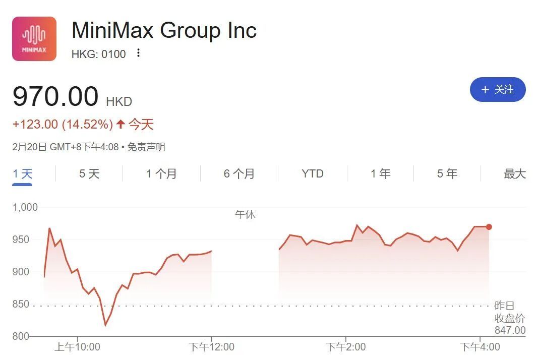 另一家人工智能大模型企业MiniMax也延续了节前的强劲走势,当天收涨超14%,市值也超过3000亿港元。自上市以来,MiniMax已经累计上涨487.88%。