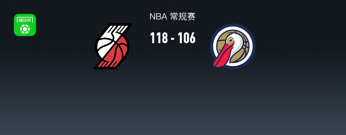 第四节,开节鹈鹕墨菲、费尔斯联手冲框追至4分,紧跟开拓者霍勒迪、卡马拉得分再度拉大分差至10分,后半接上来鹈鹕奎因、穆雷一波8-0再度迫近至3分,随后阿夫迪亚连续冲框得分稳住局面,随着霍勒迪再中三分杀死悬念,最终开拓者118-106战胜鹈鹕。