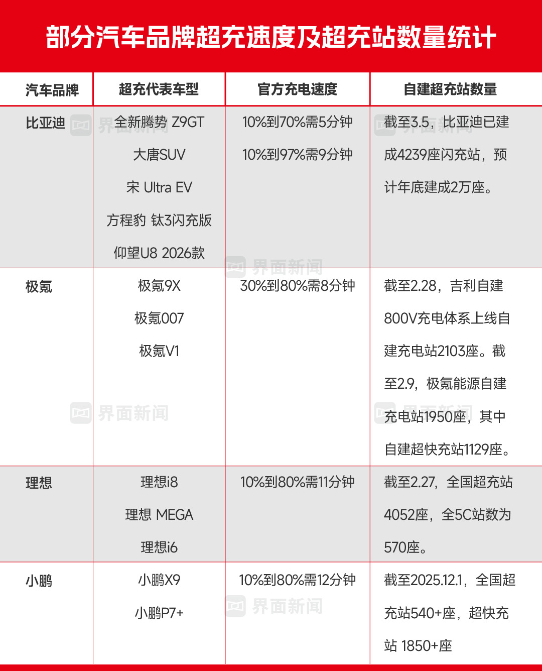 这一转变将强化闪充在终端的用户感知。朱锴告诉界面新闻,20万元以下汽车品牌很少在补能环节重压资源。比亚迪如果能把闪充站铺开,将比竞争对手多一个强势且难以被短时间追赶的卖点。对其高端品牌而言,补能网络是品牌形象和服务能力的外化,可以提升消费者用车便利性和优越感。
