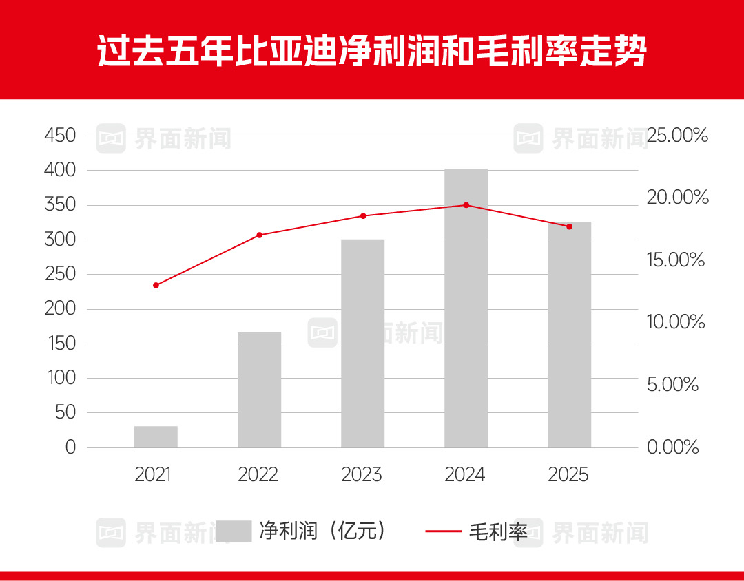 2025年,比亚迪销量同比增速降至7.73%,低于上一年的41.3%。在持续三年的价格战后,公司单车均价下探至约11万元,净利润四年来首次下滑,员工人数减少近10万。销量、利润、组织规模几乎都在扩张的比亚迪,开始显露出调整和收缩的迹象。