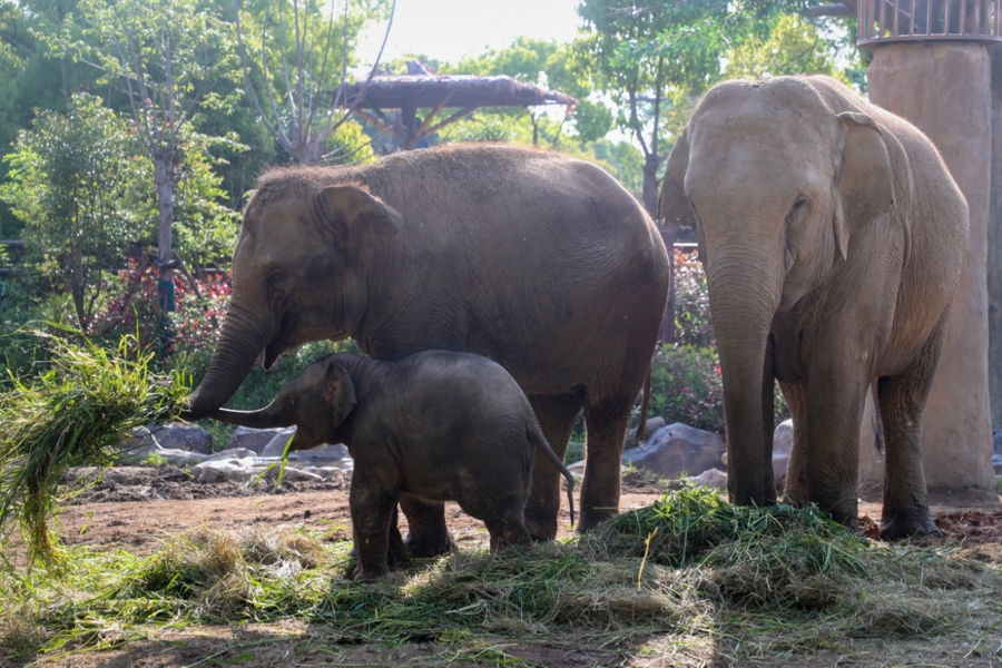 据悉,今年1月6日凌晨2点左右,亚洲象格兰顺利产下一头小公象,大约二十分钟后,小象颤巍巍地站了起来;3时它已经能自行走动;四时小象开始尝试吸奶,半小时后成功吃到第一口母乳。而格兰是位母性极好且经验丰富的妈妈,情绪稳定,温柔地护着象宝宝。