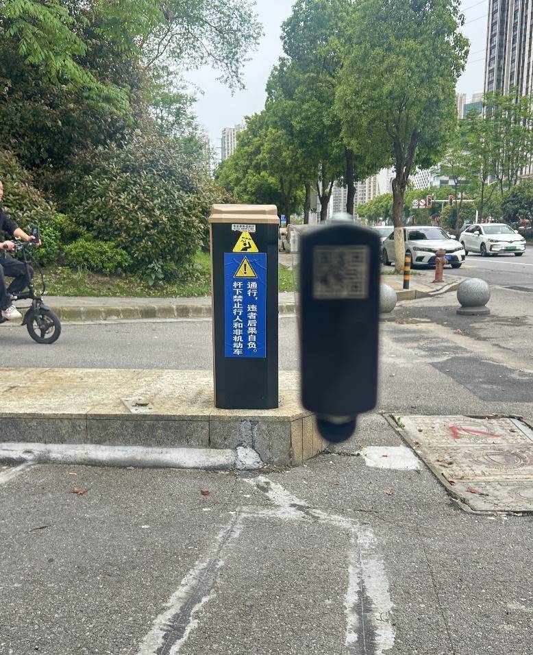 4月17日,潇湘晨报·晨视频记者来到事发地看到,道闸是小区外一块停车场的出入口,道闸两边是一条人行道和一小块绿化带。闸机上有标识,“杆下禁止行人和非机动车通行,违者后果自负。”